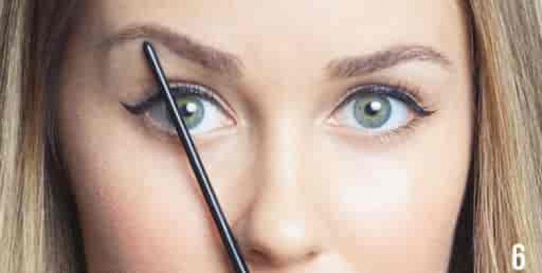 6. Որոշելու համար այն կետը, որտեղից հոնքը պիտի «ջարդվի», մատիտը պահեք քթի կողքին և վերևի մասը թեքեք այնպես, որ այն անցնի աչքի արտաքին անկյունով: Մատիտի վերին ծայրը կհուշի Ձեզ «ջարդման» կետը: