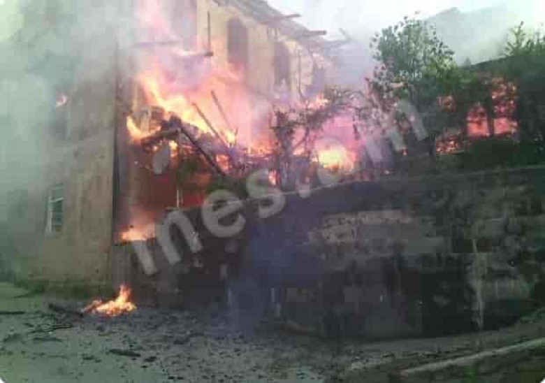 Խոշոր հրդեհ Մեղրիում. շենքն ամբողջությամբ կրակի մեջ է (ֆոտո)