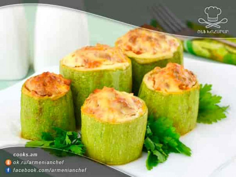 Ջեռոցում եփված դդմիկներ` բանջարեղենային և մսային լցոնով