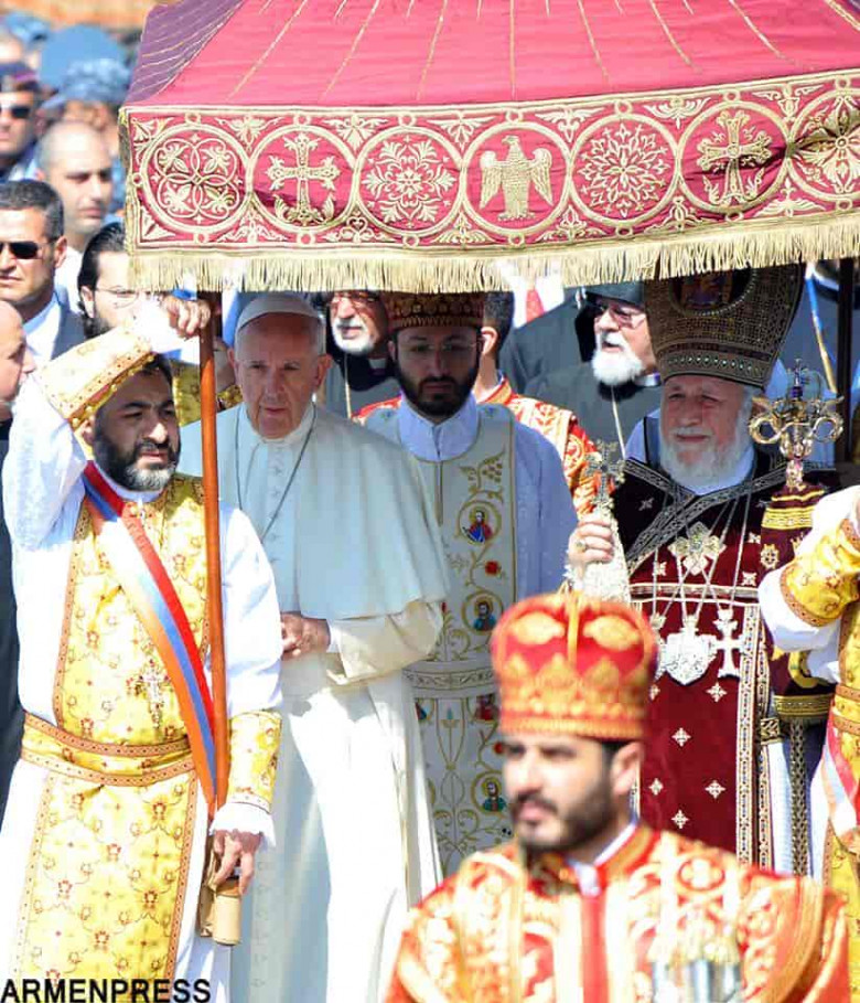 Գոհունակությամբ ու հոգևոր ուրախությամբ ենք անդրադառնում, որ 2001 թվականին քրիստոնեությունը Հայաստանում պետական կրոն հռչակման 1700-ամյակի առիթով Հայաստան այցելեց Սուրբ Հովհաննես-Պողոս Բ Պապը՝ որպես Հայ և Կաթոլիկ եկեղեցիների եղբայրական ջերմ հարաբերությունների պատմության նոր էջի վկայություն: Մենք երախտապարտ ենք, որ շնորհն ենք ունեցել միասին լինելու Հռոմի Սուրբ Պետրոսի տաճարում, հանդիսավոր պատարագի ժամանակ, 2015թ, ապրիլի 12-ին, որտեղ մենք մեր հանձնառությունն արտահայտեցինք հակադարձելու բռնության ու անհանդուրժողականության ցանկացած դրսևորում՝ վերակոչելով այն, ինչ արդեն հաստատվել էր Հովհաննես Պողոս Բ-ի և Գարեգին Բ Ամենայն Հայոց Կաթողիկոսի կողմից ստորագրված համատեղ հայտարարության մեջ, որ «մեկուկես միլիոն հայ քրիստոնյաների բնաջնջումն ընդհանրապես ընկալվում է իբրև Ի դարի առաջին ցեղասպանություն» (Համատեղ հայտարարություն, Գարեգին Բ և Հովհաննես-Պողոս Բ, 27 սեպտեմբերի, 2001 թ.):
