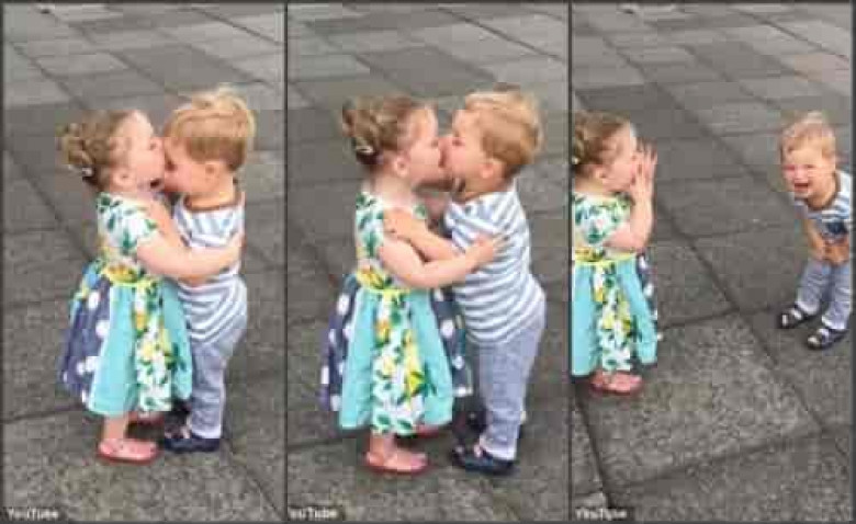 Հոլովակում երկու փոքրիկներ, հավանաբար լինելով ֆիլմերի տպավորության տակ, համբուրում են միմյանց շուրթերը, ինչից հետո երկուսով սկսում են մի լավ ծիծաղել։