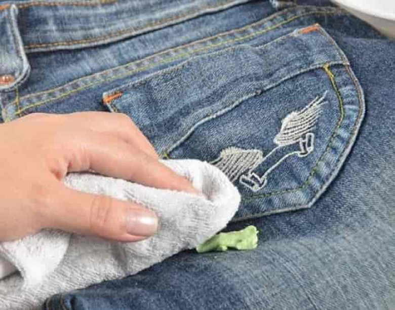 LifeՈրքան էլ անհապաղ ու զգուշորեն փորձենք հեռացնել զգեստին կպած մաստակը, այնուամենայնիվ, նրա հետքերն ամբողջովին վերացնել չի հաջողվում: Ճիշտ է՝ այս պարագայում քիմմաքրումն ամենահեշտ տարբերակն է, բայց գումարը խնայելու համար կարելի է հարցը լուծել տնային պայմաններում: Ջինսերի վրայից հետքերը կարելի է մաքրել եռացնելու մեթոդով: Կեղտոտված մասը դնել եռացող ջրի մեջ, սպասել, մինչև ջուրը հովանա, և քերել մաստակը սուր առարկայի, օրինակ՝ դանակի միջոցով: Այնուհետև տրորել կտորը մինչև մաքրվելը: