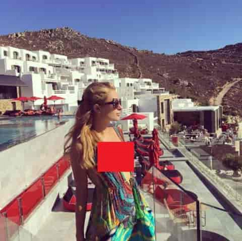 Հիլթոնը սոցցանցում նկար է հրապարակել, որում ընդարձակ տունիկայով է և անկեղծ դեկոլտեով: Սակայն որոշ օգտատերեր հայտարարել են, որ աղջկան այնքան էլ չի սազում տունիկան, քանի որ զգեստի դեկոլտեն ցուցադրում է նրա փոքր կուրծքը: