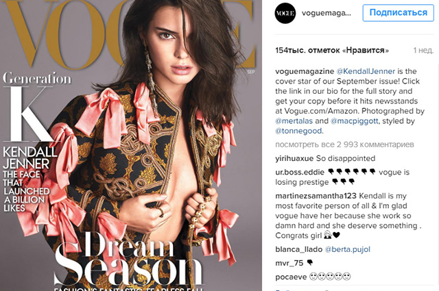 Ամերիկյան Vogue ամսագրի գլխավոր խմբագիր Աննա Վինտուրը որոշել է աջակցել Քարդաշյան-Ջեներ ընտանիքի 20-ամյա ներկայացուցչին և իր տեսակետն է արտահայտել այդ հարցի շուրջ: