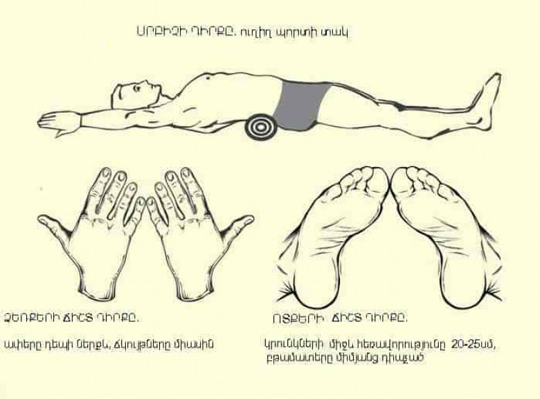 7. Պառկել այս դիրքով 5 րոպե, այնուհետև զգուշորեն վեր կենալ, քանի որ վարժությունը կատարելիս ոսկորներն ու հոդերը մի փոքր խախտվում են։