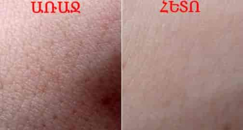 - Մաշկը ծածկել այս խառնուրդով և մի քանի վայրկյան մեղմ ու շրջանաձև շարժումներով մերսել մաշկը։