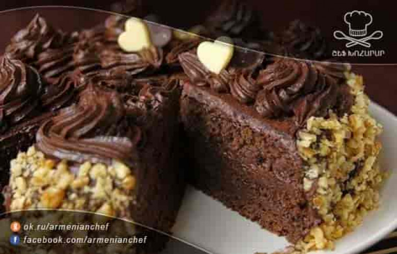 - Տորթի կողքի հատվածներին կարող եք շաղ տալ մանրացված ընկույզ, իսկ վրան զարդարել ըստ Ձեր ճաշակի: