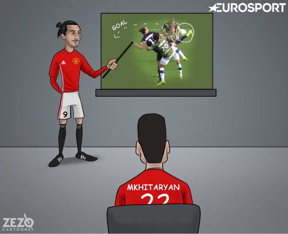 Ծաղրանկարում «Մանչեսթեր Յունայթեդի» շվեդ հարձակվող Զլատան Իբրահիմովիչը այդպիսի գոլ խփելու դասեր է տալիս Հայաստանի հավաքականի կիսապաշտպանին: