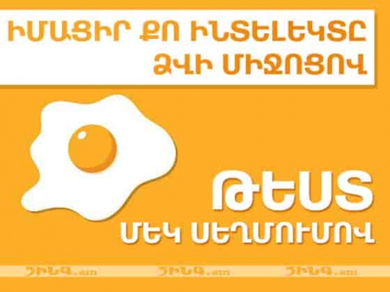 Թեստ մեկ սեղմումով. Որոշիր քո ինտելեկտը ձվի միջոցով Life 6 Հունվար, 2017 21:31 Կիսվել Թեստն՝ այստեղ : Կիսվել