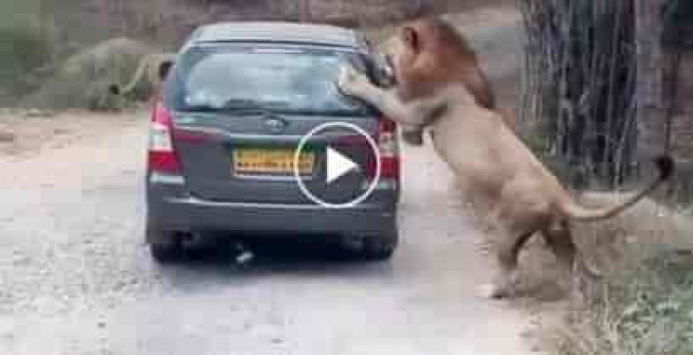 Կատաղած առյուծը հարձակվեց զբոսաշրջիկների մեքենայի վրա. տեսեք, թե ինչ կատարվեց դրանից հետո