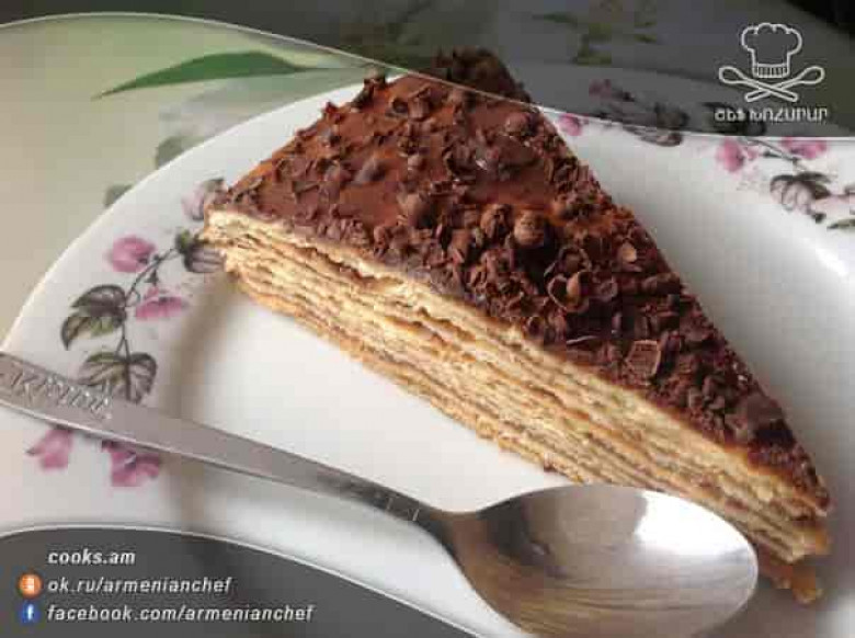 - Հանում ենք առաջին շերտը և քանի դեռ տաք է վրան կրեմ ենք քսում, այնուհետև նույնը անում ենք մնացած շերտերի հետ։