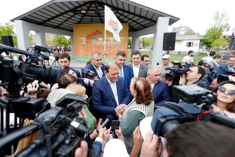 «Հաշվի առնելով, որ այս բոլոր տարիների ընթացքում դուք բազում առիթներ ունեցել եք համոզվելու, որ մեր թիմը դատարկ խոստումներ տվող չէ՛ և մի՛շտ գործով է ապացուցել, որ բանիմաց է, փորձառու և գիտի՛ իր խոսքի արժեքն ու կշիռը, այսօր եկել ենք խնդրելու ձեզ, որ մայիսի 14-ին ձեր վստահության քվեն կրկի՛ն տաք մեր թիմին: Այս տարիների ընթացքում մենք միասի՛ն ենք ապահովել մեր սիրելի քաղաքի, մեր մեծ տան զարգացումն ու, ես վստա՛հ եմ, որ մենք միասին էլի՛ կշարունակենք մեր համատեղ աշխատանքը՝ Հանու՛ն մեր ապագայի, Հանու՛ն մեր երեխաների և Հանու՛ն Երևանի»: