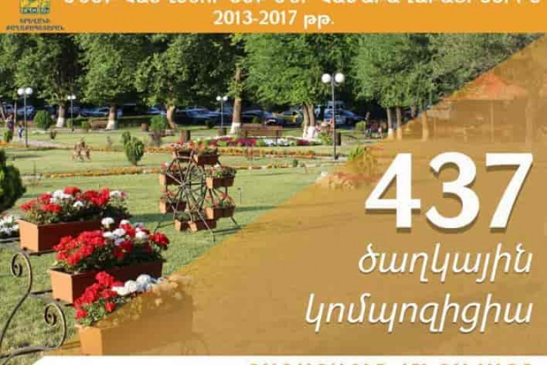 2013-2017թթ.Երևանում հարմարավետ և մատչելի միջավայրի ապահովման ծրագրերի շրջանակում 437 ծաղկային կոմպոզիցիա է տեղադրվել կանաչ ու բարեկարգ հատվածներում: