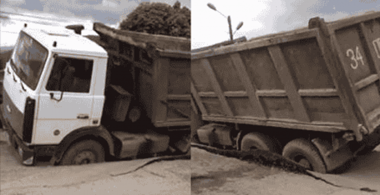 Վանաձորում ասֆալտը չի դիմացել բեռնատարի ծանրությանը