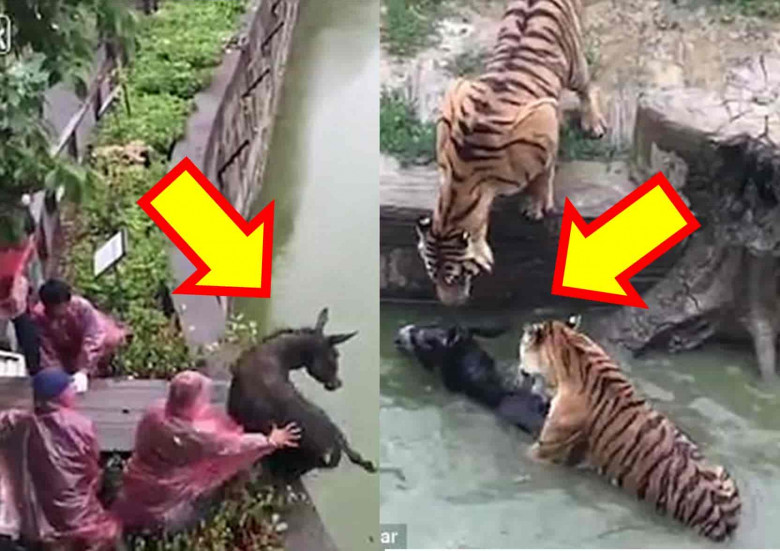 Չինաստանում կենդանաբանական այգու աշխատակիցները կենդանի ավանակին գցել են վագրերի մոտ (VIDEO)