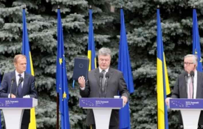 ՄիջազգայինՈւկրաինայի և Եվրամիության ներկայացուցիչները Ուկրաինա-ԵՄ գագաթնաժողովի արդյունքում չեն ստորագրել ասոցիացման համաձայնագիրը: Հաղորդում է DW-ն: Հուլիսի 12-ի երեկոյան քննարկում է եղել Ուկրաինայի նախագահ Պյոտր Պորոշենկոյի, Եվրահանձնաժողովվի ղեկավար Ժան Կլոդ Յունկերի և Եվրոպական Խորհրդի ղեկավար Դոնալդ Տուսկի հանդիպման ժամանակ: Ուկրաինական կողմն առաջարկել է, որպեսզի համատեղ Ասոցիացման համաձայնագրի նախաբանում նախադասություն ներառվի, որտեղ նշվի, որ ԵՄ-ն «ճանաչում է Ուկրաինայի եվրոպական ձգտումները և ողջունում նրա եվրոպական ընտրությունը»: Սակայն ԵՄ-ի ներկայացուցիչները, մասնավորապես Նիդերլանդները, դեմ են արտահայտվել այդ նախադասության ներառմանը: Արդյունքում համաձայնագրի ստորագրում հետաձգվել է: