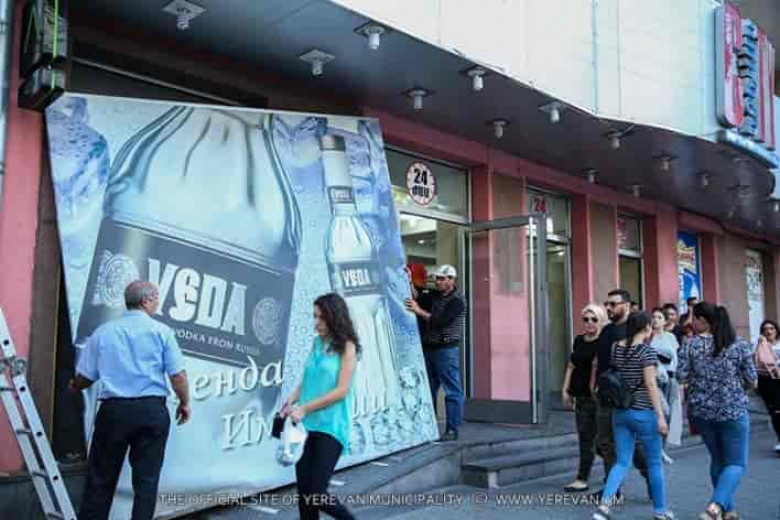 ՀասարակությունԴեռևս օգոստոս ամսին Երևանի քաղաքապետարանը համապատասխան ընթացակարգով վարչական վարույթներ էր իրականացրել, որոնց նպատակը պատմամշակութային արժեք ներկայացնող շենքերին առկա տարատեսակ գովազդների կանոնակարգումն էր: Մասնավորապես, այդ նպատակով կազմվել էին գովազդային անձնագրեր, որտեղ մանրամասն նշված էր, թե ինչ տեսք պետք է ունենան գովազդները, որպեսզի չխաթարեն այդ շենքերի ճարտարապետական դիմագիծը: Այդ մասին իրազեկվել են տնտեսվարող սուբյեկտները: Ըստ այդմ, Երևանի քաղաքապետի համապատասխան որոշմամբ, սեպտեմբերի 11-ին մայրաքաղաքի Տիգրան Մեծ պողոտայից մեկնարկել են գովազդային անձնագրերին չհամապատասխանող գովազդային ցուցանակների ապամոնտաժման աշխատանքները: Ընդ որում, Տիգրան Մեծ պողոտայում առկա 60 պատմամշակութային շենքերի գերակշիռ մասը գտնվում է Հանրապետության հրապարակից մինչև Խանջյան փողոցն ընկած հատվածում: