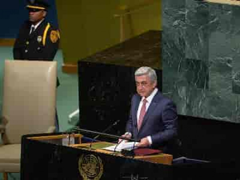 «Վերջին անգամ այս նույն բարձր ամբիոնից խոսելիս՝ անդրադարձա Հայոց ցեղասպանության միջազգային ճանաչման գործընթացին եւ պարտքս համարեցի մեկ առ մեկ երախտագիտություն հայտնել բոլոր այներկրներին, որոնք ճանաչել էին իմ ժողովրդի դեմ Օսմանյան կայսրությունում կատարված այդ հրեշավոր ոճիրը: