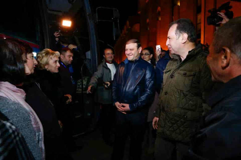 Այնուհետ, մեկնող բոլոր ավտոբուսներին մոտենալուց և զինվորների ծնողներին բարի երթ մաղթելուց հետո, քաղաքապետ Տարոն Մարգարյանը և ՀՀ պաշտպանության նախարար Վիգեն Սարգսյանը, ինչպես և նշել էին նախապես, ընկերակցել են մեկնողներին և հարավարևելյան սահմանամերձ զորամասերից մեկն ուղևորվող ավտոբուսով, ծնողների հետ միասին, մեկնել են զինծառայողների հետ հանդիպման:
