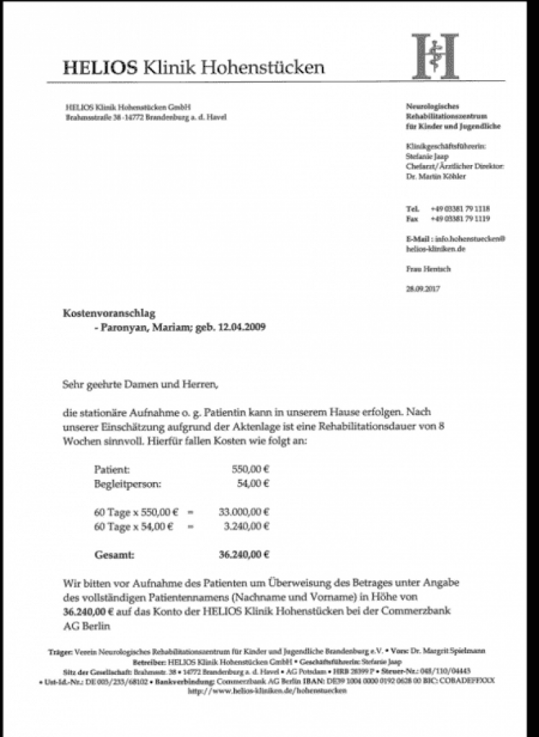 ՀասարակությունԲարև Ձեզ, ես Պարոնյան Մարիամի մայրն եմ:Մարիամիկը ծնվել է ՄՈՒԿ ախտորոշմամբ:Նա արդեն 8 տարեկան է և այս տարիների ընթացքում մենք շատ երկար ճանապարհ ենք անցել,2 անգամ վիրահատվել,ֆիզիո,էրգո,հիդրոթերապիաներ անցել անընդմեջ,2014 թ-ին մեծ վերականգնողական կուրս ենք անցել Գերմանիայի Հելիոս կլինիկայում բարերարների և առաջին տիկին Ռիտա Սարգսյանի հովանավորությամբ ,հիմա մեզ այնտեղից նորից բուժումը շարունակելու հրավեր է եկել և մեզ պակասում է 10000 եվրո:Խնդրում եմ իմ հայրենակիցներին ևս մեկ անգամ սատար կանգնել և օգնել մեզ հաղթանակին հասնել և որ իմ բալիկն էլ լիարժեք կյանքով ապրի :