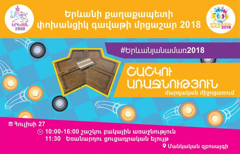 ՀասարակությունՀուլիսի 27-ին ՝ ժամը 10:00-16:00-ն, «Երևանյան ամառ 2018» եռամսյա միջոցառումների ծրագրով անցկացվող Երևանի քաղաքապետի փոխանցիկ գավաթի 2018 թվականի մրցաշարի շրջանակում Մանկական զբոսայգում կկայանա շաշկու բակային առաջնությունը: