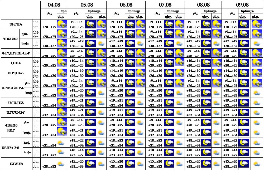 Օդի ջերմաստիճանն օգոստոսի 4-ին կնվազի 2-3 աստիճանով, այնուհետև էապես չի փոխվի:
