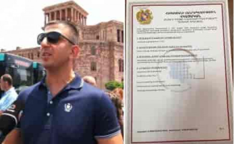 Նկարում տան Պալաչի հայրական տան վկայականն է, որը Ծառուկյանը հանձնել է նրա ծնողներին: