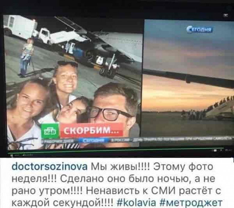 Պարզվում է, որ նկարն ամենևին կապ չունի տեղի ունեցած միջադեպի հետ: Նկարի աղջիկը իր ВК-ի էջում գրառում է արել ասելով, որ մեզ համար պետք չի սգալ, քանի որ մենք ողջ ենք: Նկարը մի քանի շաբաթ առաջ արված նկար է, իսկ ամուսինները այդ չվերթով չեն մեկնել:
