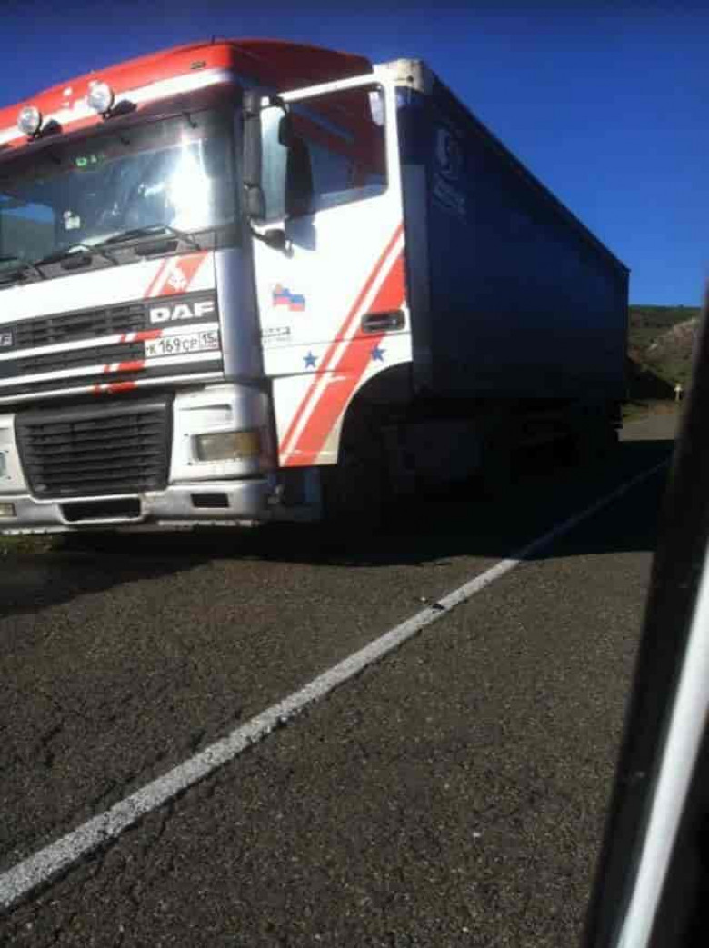 Այս բեռնատարը ընկել է կրակահերթի տակ Բաղանիս գյուղի մոտակայքում: Նկարում երևում է, որ բեռնատարը ունի Ռուսական պետհամարանիշներ: Այսինքն ադրբեջանցիները կրակահերթ են բացել ԵԱՀԿ Մինսկի խմբի համանախագահ պետություններից մեկի պետհամաանիշենրի ուղղությամբ, որի վրա ՌԴ դրոշ կա: Բացի այդ մեքենայի դռներին էլ են նշմարվում ռուսական դրոշներ: Սրան էլ հավելենք, որ վարորդը ազգությամբ օսեթ է եղել: Փառք Աստծո չի վնասվել վարորդը, բայց մեքենայի անվադողերը վնասվել են: