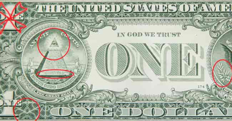 Ամերիկյան 1 դոլարանոց թղթադրամը երկար տարիներ համարվում էր միստիկական գաղտնիք և շատ հիպոթեզների աղբյուր, որոնք վերաբերում են թղթադրամի վրա առկա բազմաթիվ խորհրդանիշներին և նշաններին: