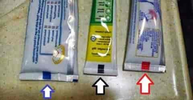 Обратите внимание, что на каждом тюбике с зубной пастой внизу есть квадратный или прямоугольный символ. Он бывает разных цветов.