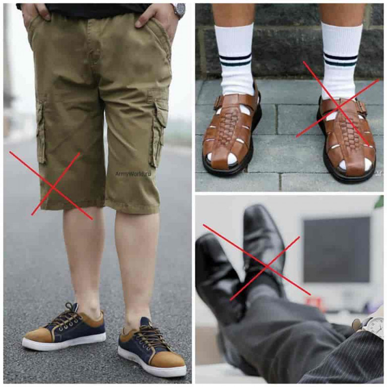 И вообще, к носкам нужно относится очень внимательно. Это только кажется, что их не видно. Как только вы садитесь, а особенно, закидываете ногу на ногу, носки тут же становятся самой заметной частью вашего образа. Кстати, еще хуже носка в сандалиях смотрятся белые носки с черными классическими туфлями, ну и черные – с белыми кроссовками.