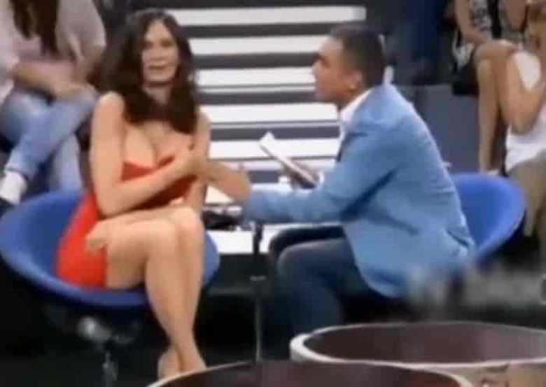 Ну а данная ситуация и вовсе будто вышла напрямую из анекдотов. Ведущий умудрился случайно обнажить бюст гостьи в прямом эфире, хотя, разумеется, совершенно не собирался это делать. Багровое от смущения лицо мужчины показывает, что он даже не предполагал такого исхода событий!