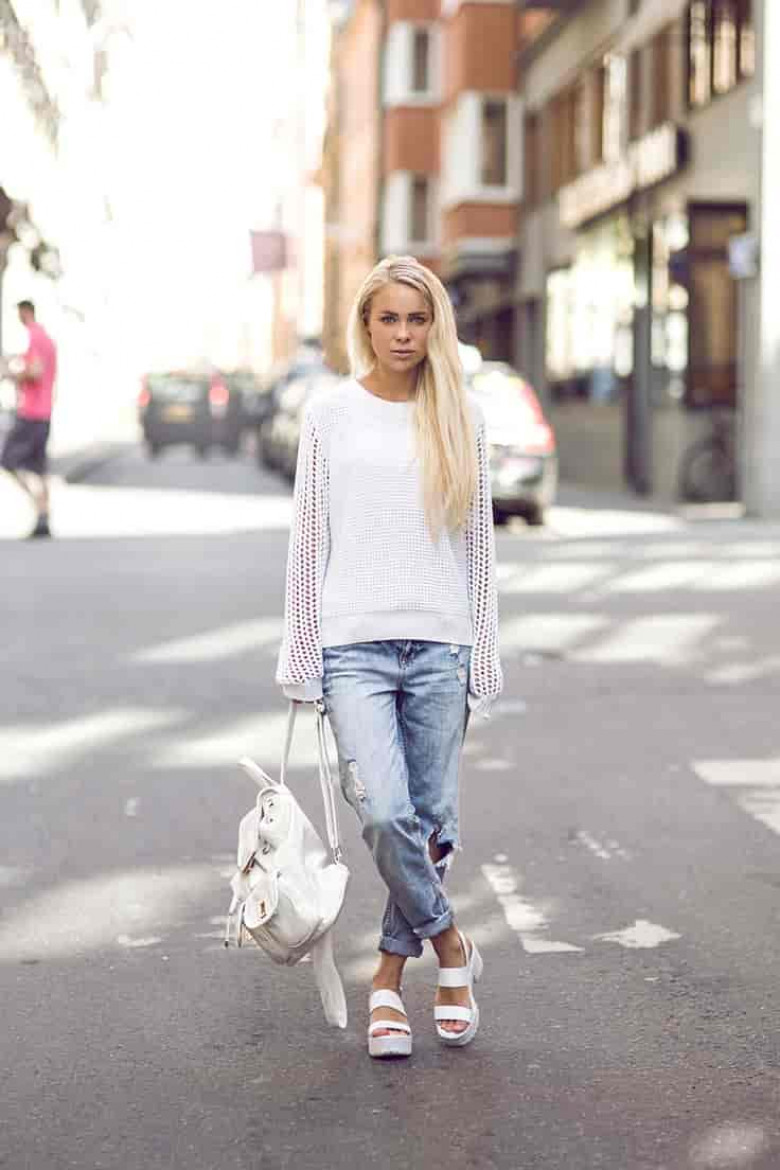 На ваше усмотрение, одно условие — должны сидеть по фигуре, без мешковатости.Чем оригинальнее крой жакетов и джинсов, тем свежее вы будете выглядеть. Правило расположения для задних карманов джинсов — чем ниже, тем лучше. Одни джинсы с высоким поясом должны быть у вас на все случаи жизни, когда нужно надеть что-то короткое, спрятать неидеальный живот, и если остались единственные чистые стринги, которые вылезают из всех штанов. Ещё вы должны найти джинсы «своего» голубого цвета. И дырявые джинсы под настроение.