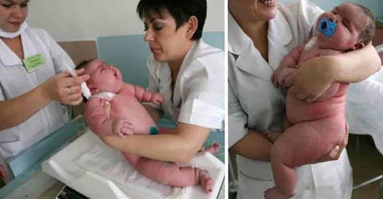 LifeМы предлагаем вашему вниманию очередную историю про рекордсмена. Посмотрите на фотографию этого ребенка. Наверняка вы подумали, что ему примерно 4-5 месяцев? Ошибаетесь. Это новорожденный малыш, который весит чуть больше 18 кг! Даже врач, который делал кесарево сечение, был просто шокирован, потому что он рассчитывал увидеть двойняшек или тройняшек, но уж никак не одного ребенка с таким большим весом! «Я действительно ожидал увидеть 2-3 малышей, но нет, был только один. Один крепыш! Наверное, он будет игроком в регби», — рассказывает врач.
