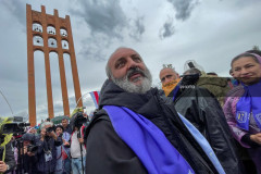 Մայր Աթոռի բակը բազմամարդ է. մի կողմում Վեհափառի աջակիցներն են, մյուսում՝ նրա հեռացումը պահանջողները