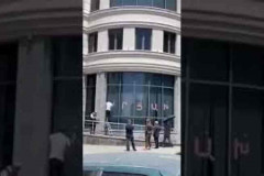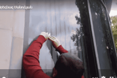 ՏԵՍԱՆՅՈՒԹ. Քաղաքացիներն ԱԳՆ-ի շենքի պատուհաններին փակցրեցին Արցախի դրոշը