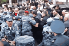 Ոստիկանները քաշքշելով, ուժ կիրառելով բերման են ենթարկում ցուցարարներին