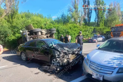 Բախվել են «Toyota»-ն ու «ԶԻԼ»ը. վերջինը կողաշրջվել է. ճանապարհը մասամբ փակվել է