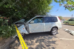 Ուջանում բախվել են «Nissan X-Trail»ն ու «VAZ 2104»-ը. «Nissan»-ը կոտրել է քարե պ...