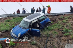 Mini Cooper-ը Դավիթաշենում բախվել է պատնեշին, հայտնվել բլրակում, վարորդն ու վիրա...