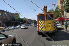 Արշակունյաց պողոտայում տրոլեյբուսի էլեկտրալարերը պոկվել ու վնասել են մի քանի ավտ...