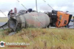 Բետոնով բեռնված «ՄԱԶ»-ը կողաշրջվել է. կա վիրավոր