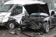 Երեւանում Ford Mustang-ը բախվել է կայանված Ford Transit-ին, որն էլ հրվել է դեպի ...