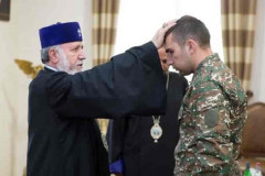 Գարեգին Բ-ն ընդունել է շփման գծում ծանր վիրավորված սերժանտ Գեւորգ Դադասյանին