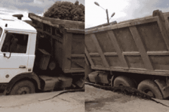 Վանաձորում ասֆալտը չի դիմացել բեռնատարի ծանրությանը