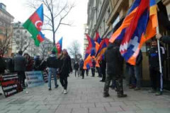 Ադրբեջանցի ցուցարարներին Շվեդիայի հայ համայնքը դիմավորել է Արցախի դրոշներով