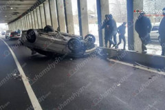 Արմավիր-Էջմիածին ճանապարհի թունելում «BMW»-ն բախվել է արգելապատնեշներին ու շրջվե...