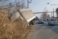 Ազատաշենի ճանապարհին բեռնատարը կիսակողաշրջվել և հայտնվել է ջրատարում. Shamshyan