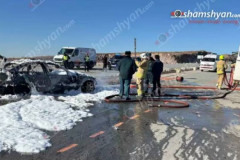 Արագածոտնում բախվել են «Mercedes»-ն ու «BMW»-ն, վերջինն այրվել է․ Shamshyan